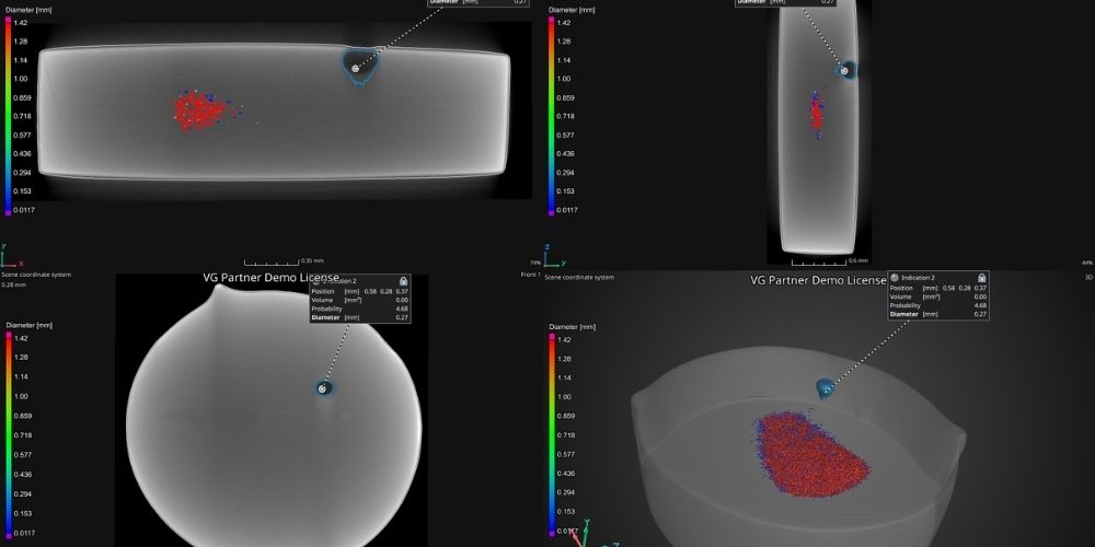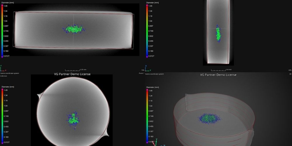 At the PHI GmbH laboratory in Feldkirchen, metallic glass samples were examined using the EasyTom S system from RX Solutions. The scan settings were optimised to achieve a high resolution of approximately 5 micrometres (voxel size). Despite the small size of the samples, which were approximately 1 mm high and 3 mm in diameter, each scan took several hours to complete.
