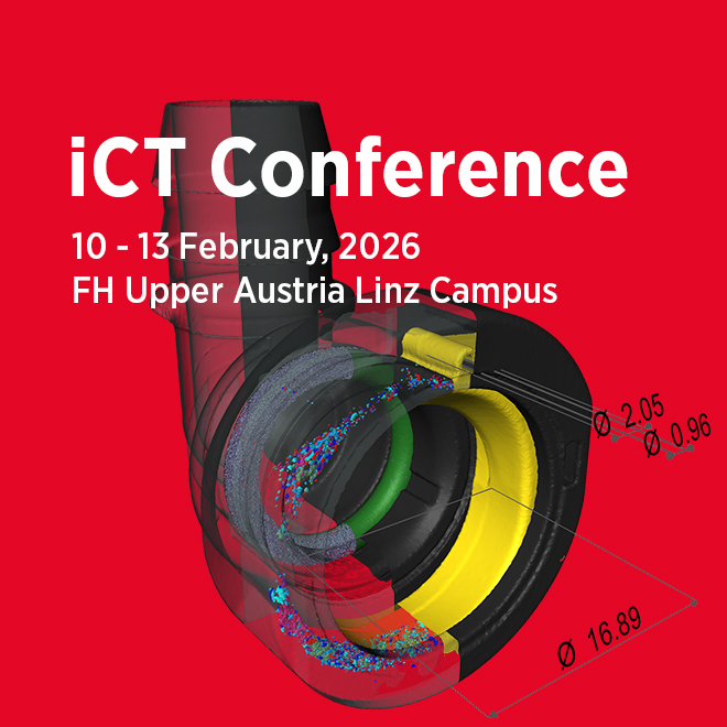 Conference topics include CT for non-destructive testing of metals, plastics, composites, ceramics and other materials: